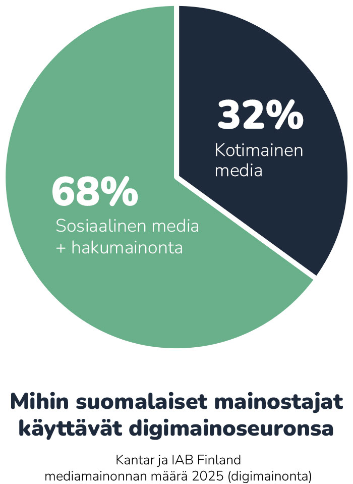 Kansallisen mediatutkimuksen (2024) mukaan eri sosiaalisen median palveluita seuraa viikoittain 73 prosenttia yli 15-vuotiaista suomalaisista. Suosituimman sosiaalisen median palvelun Facebookin käyttäjiä on viikossa 60 prosenttia, kun taas paljon huomiota saaneen TikTokin käyttäjiä 16 prosenttia. Kaiken sosiaalisen median kokonaiskäyttäjämäärä on viikossa 3 139 000, vertailuna pelkästään Kärkimedia-lehtien digilukijoita viikossa 3 043 000.