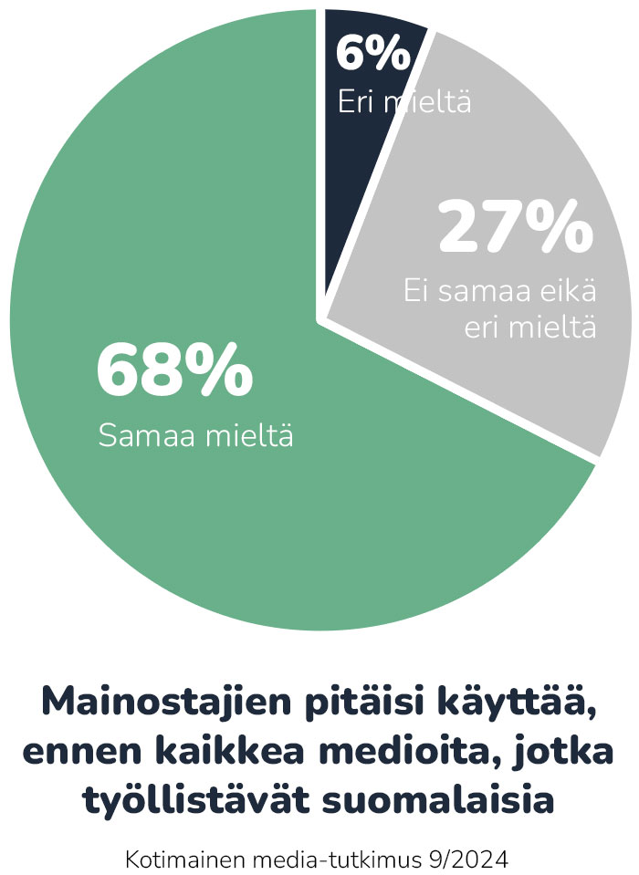 Alle puolet väestöstä suhtautuu mainontaan sosiaalisessa mediassa myönteisesti, tämä koskee myös sosiaalisen median aktiivikäyttäjiä. Televisiossa tai lehtien nettisivuilla olevaan mainontaan suhtautuu positiivisesti yli puolet väestöstä, painetuissa sanomalehdissä 77 prosenttia.