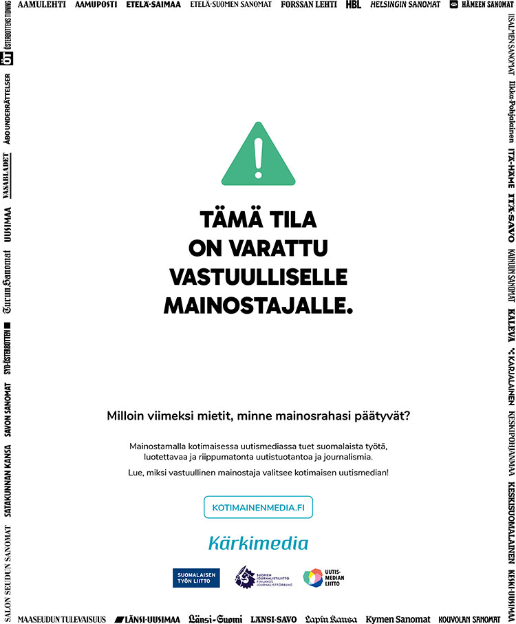 Sanomalehtiä pitää luotettavana 77 prosenttia suomalaisista, Googlea viisi prosenttia ja sosiaalista mediaa kolme prosenttia. Luotettavuus on suomalaisten mielestä uutismedian tärkein ominaisuus ja tähän kotimainen uutismedia pyrkii vastaamaan.